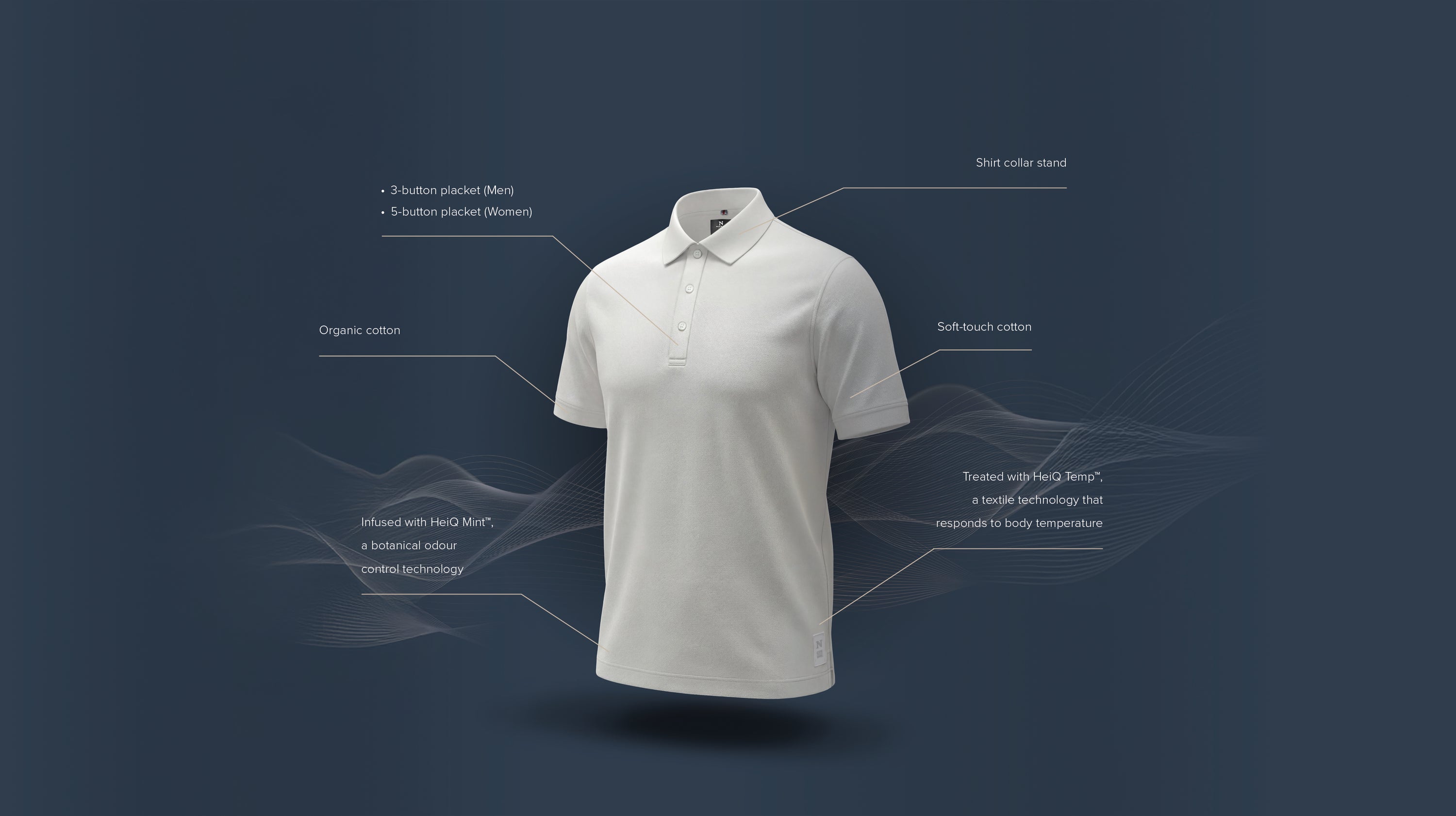 Enhanced with HeiQ Smart Temp™ intelligent thermoregulation and HeiQ Mint™ botanical odour control, Altavista keeps you cool, fresh, and confident throughout the day. It is the refined everyday polo, made for those who value both sophistication and performance.