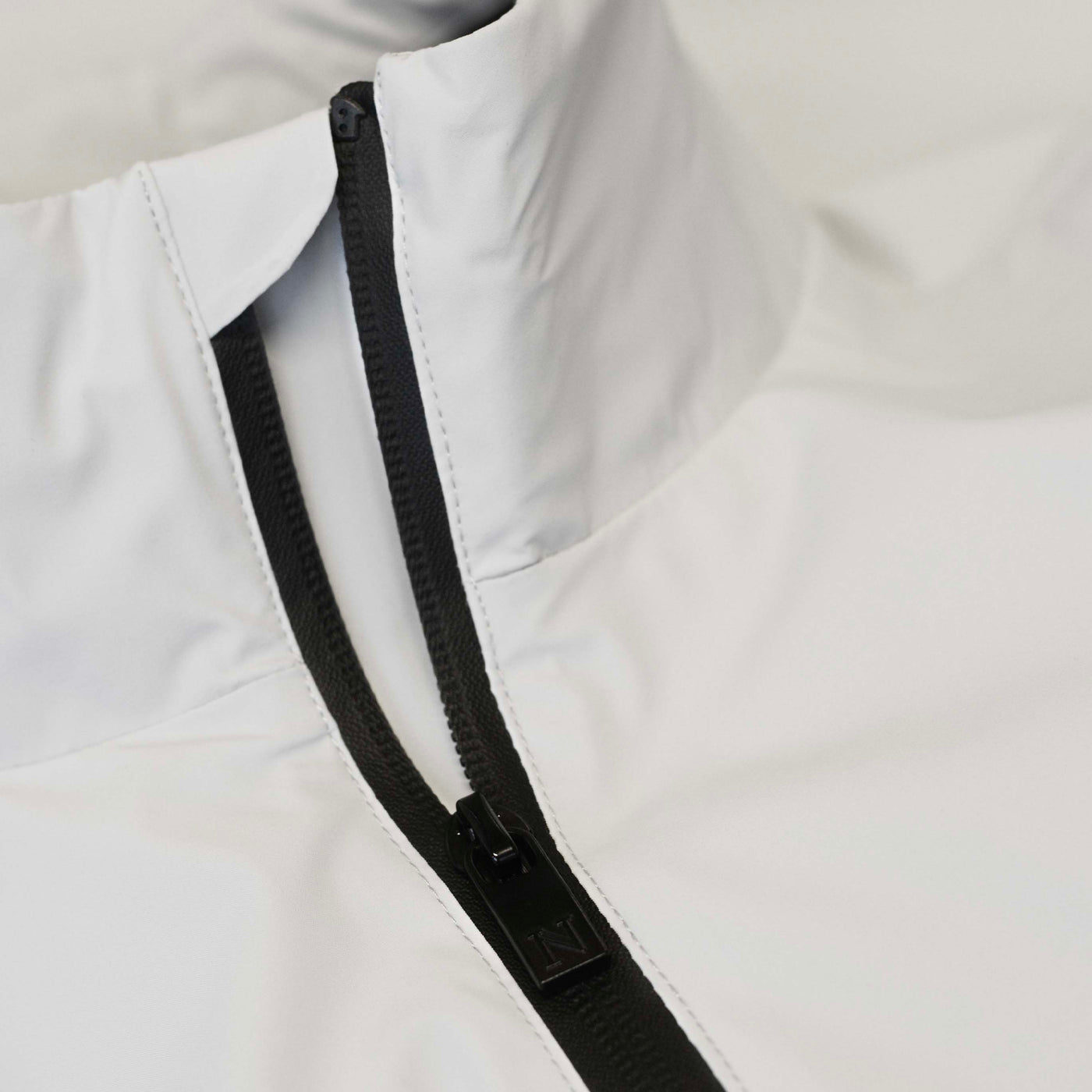 Laget av resirkulert, elastisk stoff med vannavvisende overflate, gir den pålitelig beskyttelse mot skiftende vær samtidig som uttrykket forblir rent og sofistikert.